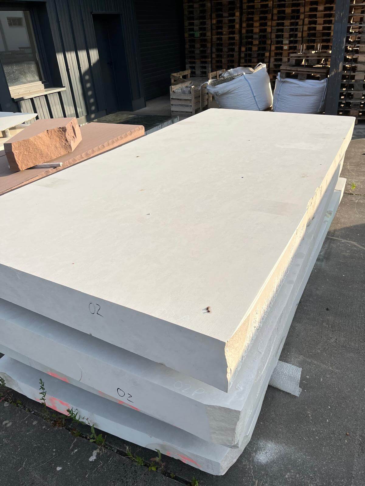 Unsere Tranchen aus den verschiedensten Natursteinsorten entstehen durch die präzise Weiterverarbeitung unserer Rohblöcke in leistungsstarken Partnerbetrieben in Belgien, Deutschland und Italien. Durch diese enge Zusammenarbeit stellen wir gleichbleibende Qualität und kurze Lieferzeiten sicher.